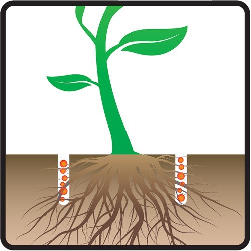 - Prípravok je možné aplikovať plošne vo vrstve cca 3 cm pod semená pred samotným výsevom (150 g/m²).